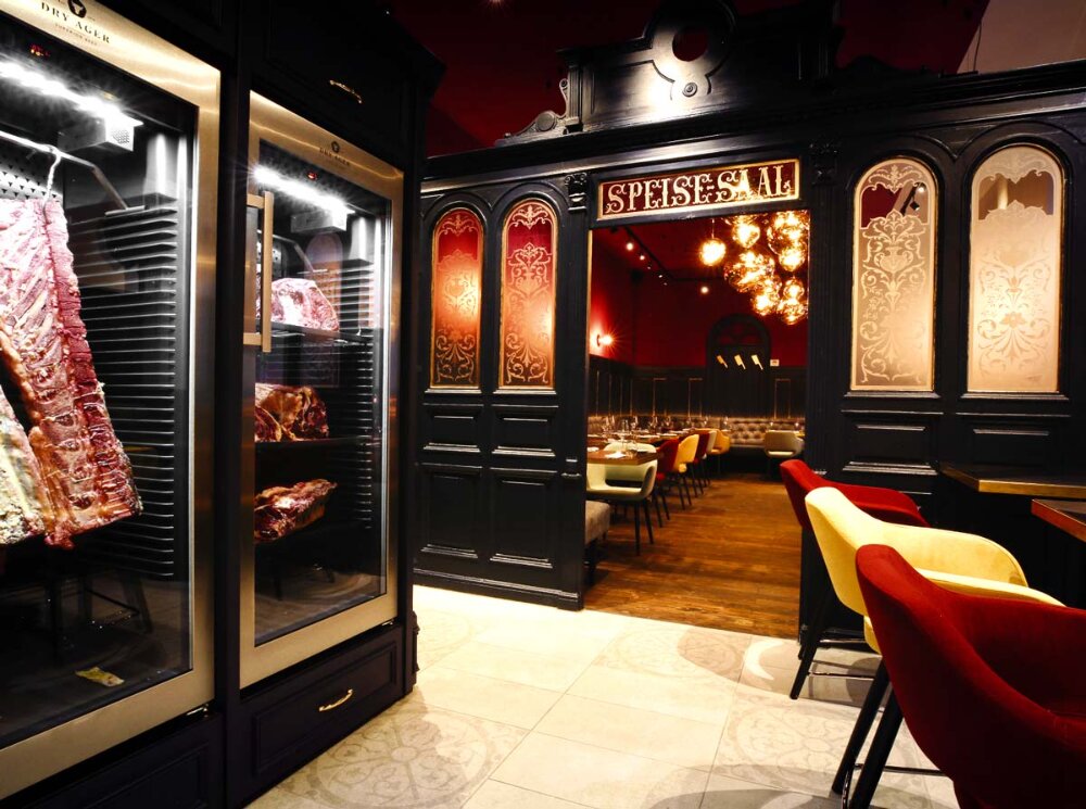 A former typical Viennese pub, the "Jahr100beisl", has been transformed into a steak house of a special kind. The old walls have been restored and combined with modern interior design, telling a mythical love story between Zeus and Europe, a story of love and lust - in the case of beef & glory - a story of love for meat.