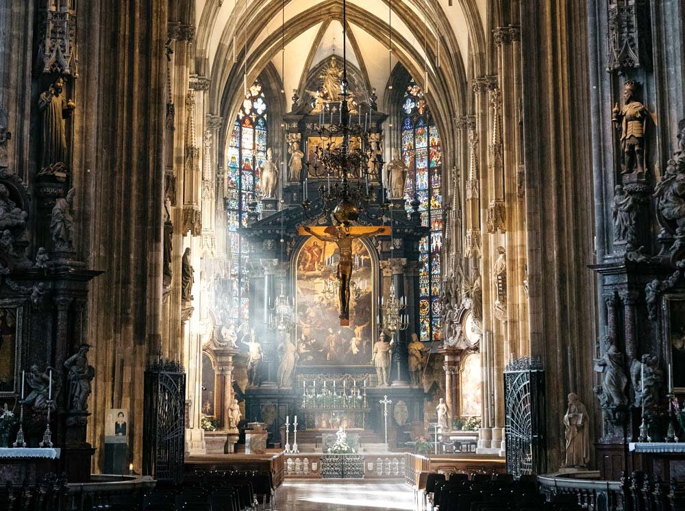 The wonderful Stephansdom (St. Stephen's Cathedral) is located in the city center of Vienna. Its origins date back to the 12th century, the interior and architecture display the old gothic era. The greater South Tower of the cathedral is 136m tall and you can enjoy an amazing view from its top. St. Stephen's Cathedral is a must-see in Vienna and a favorite among Instagrammers.